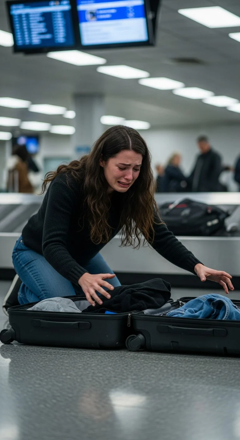 I loaded the heavy bags onto a cart. The weight made me stagger. As I pushed toward the exit, a wheel stuck, sending the top suitcase crashing to the floor. It burst open. James’s clothes spilled across the polished linoleum—a tragic confetti of a life ended too soon.